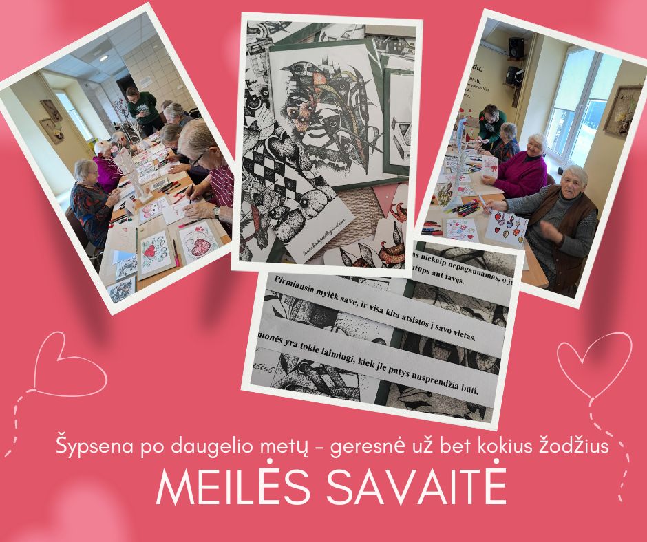 Edukaciją suorganizavo socialinė darbuotoja Žydrūnė, kuri pabrėžia, kad meilei svarbi spalvota kūryba – būtent todėl senjorės paėmė į rankas piešimo priemones, kūrė Meilės dienos atvirukus, išreiškė savo prisiminimus, jausmus ir kūrybiškumą ![]()